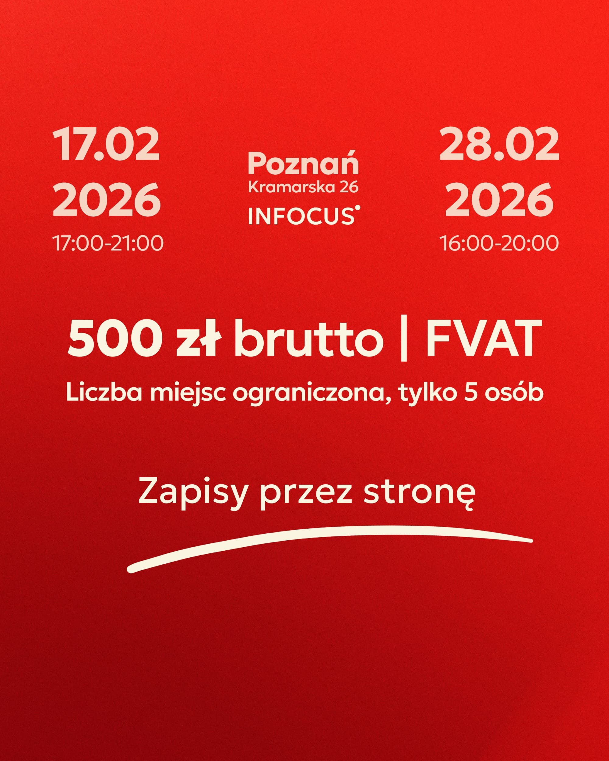 Miejsce: INFOCUS Studio, ul. Kramarska 26, Poznań